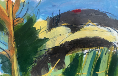 A small painting based on a sketchbook drawing made in August 2025 at a villa in Le Marche Italy