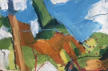 A small painting based on a sketchbook drawing made in August 2025 at a villa in Le Marche Italy