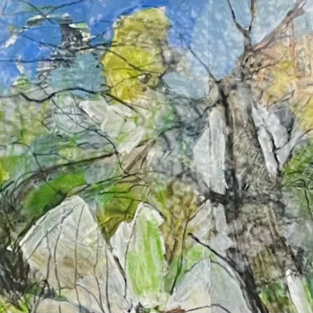 Mixed Media including acrylic paint, acrylic ink, collage, stencil, moulding pastes and pastel