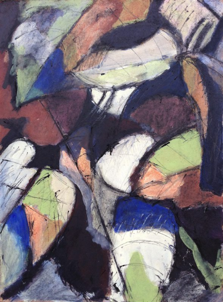 acrylic paint and ink on mdf board, mounted in black tray frame