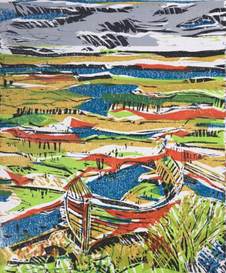 Rotting Boat on Blakeney Freshes – Linocut