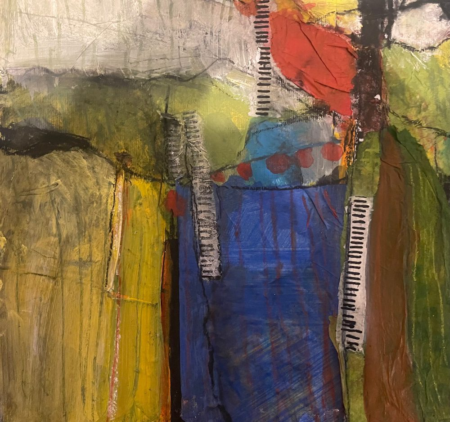 a mixed media piece based on drawings of trees on Salthouse Heath, North Norfolk